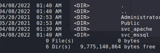 The “local.txt” flag wasn’t located in the “svc_apache” folder, and the “svc_mssql” account wasn’t accessible to the current user. This meant I would need to pivot to “svc_mssql” to retrieve the flag.